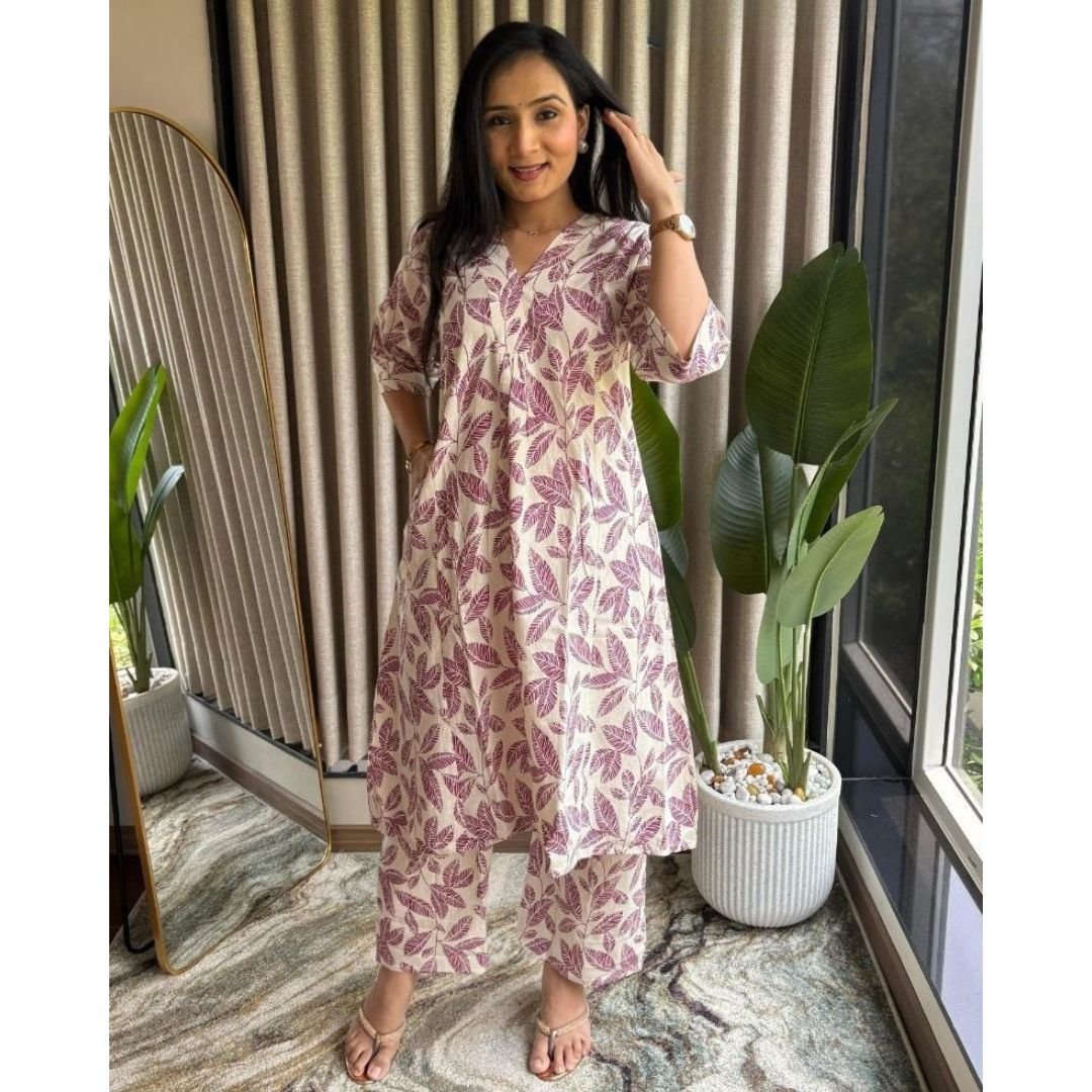 Be the first to review “A-line Big floral printed Co ords – Purple”