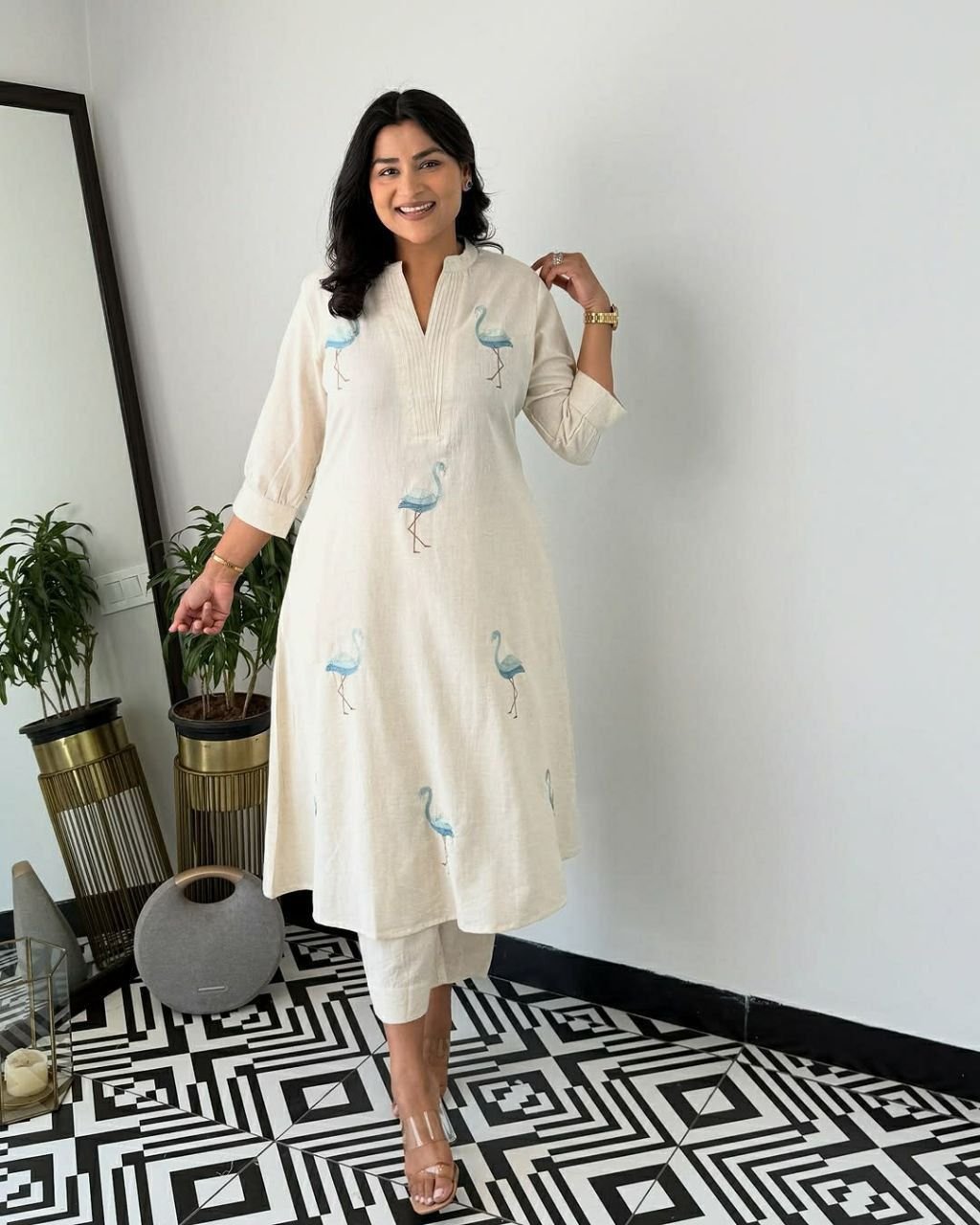 Turn heads and channel tropical vibes with our Flamingo Print Co-ord Set – the ultimate outfit for sunny days and laid-back style. This effortlessly chic matching set features a playful flamingo pattern in vibrant pinks and pastels, set against a breezy, lightweight fabric that keeps you cool and stylish.
